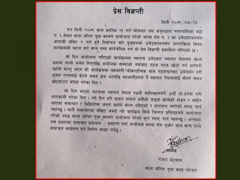 बिर्तामोड । झापाको अर्जुनधारा–६ माता मन्दिर युवा क्लबले उम्मेद्वारहरुसँग गरेको अ ...