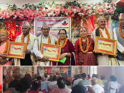 चारपाने । रिद्धनाथी गिरी कूल वंश परिवार झापाले चार जोडी दम्पत्तीलाई सम्मान गरेको ...