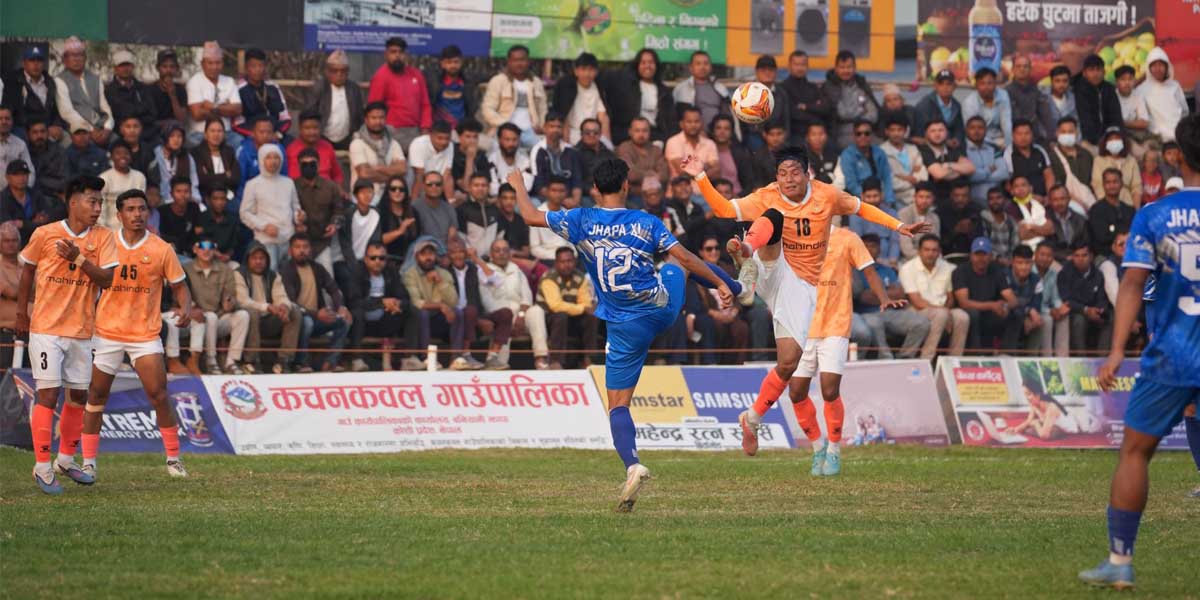 बिर्तामोड ।एक्स्ट्रिम सातौँ झापा गोल्डकपमा आज आयोजकको टिम झापा ११ फुटबल क्लबले पहिलो सेमिफाइनल खेल विभागीय टोली एपिएफ फुटबल क्लबविरुद्ध खेल्दैछ ।बिर्तामोडको डोमालाल राजवंशी रंगशालामा आज दिउँसो ३ बजे ब ...