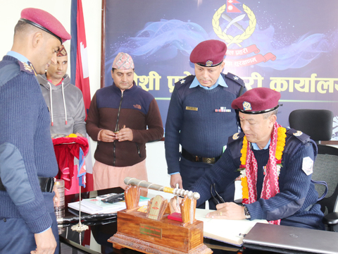 बिराटनगर । कोशी प्रदेश प्रहरी कार्यालय बिराटनगरको प्रमुखको रुपमा प्रहरी नायव महा ...