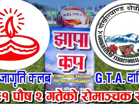 बिर्तामोड। प्रथम झापा कप २०८१ को दोस्रो क्वार्टर फाइनल खेल आज राष्ट्रिय जागृति ( ...