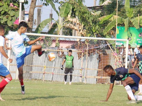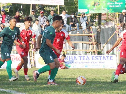 बिर्तामोड । फिनिसिङमा तालमेल नमिल्दा आयोजक झापा–११ एफसी झापाको बिर्तामोडमा जारी ...