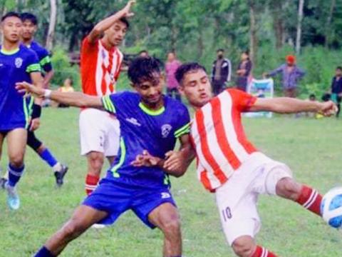 जलथल । जलथल एफसी झापाको हल्दिबारी–३ मा जारी प्रथम ढडुवा गलाउ मेचे स्मृति कप फुटब ...