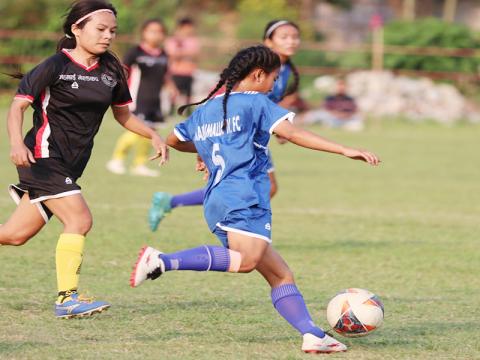 झापा । गाईघाट फुटबल क्लब उदयपुर झापामा जारी प्रदेश स्तरीय महिला गोल्डकप फुटबलको ...