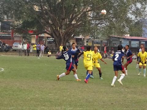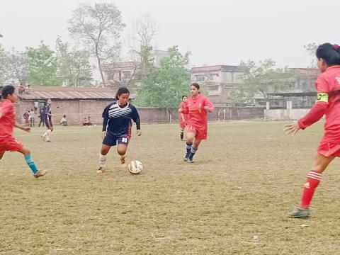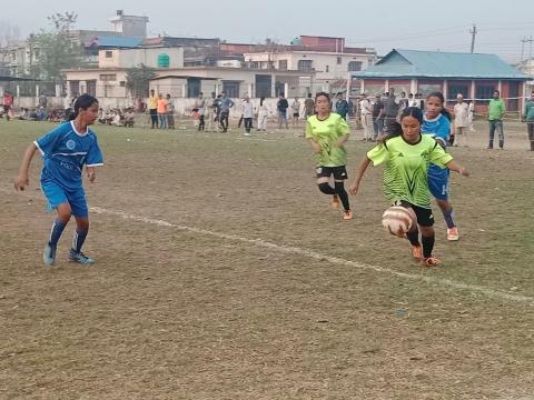 कनकाई । झापाको कनकाईमा जारी जिल्ला स्तरीय महिला फुटबलको तेस्रो दिनको खेलम ...