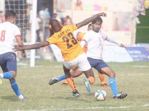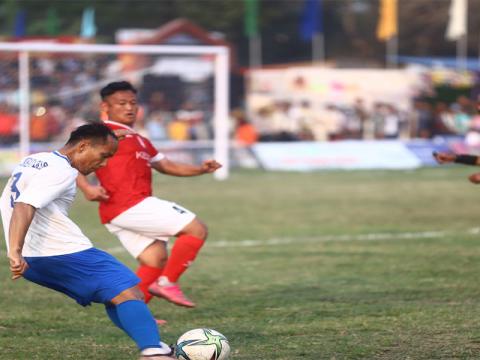 भद्रपुर । विभागीय टोली एपिएफ फुटबल क्लब प्रथम मुस्ताङ भद्रपुर झापा गोल्डकपको सेम ...