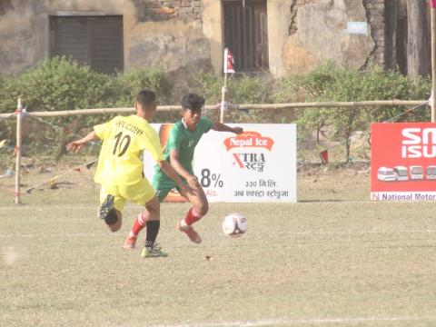 दमक । बागमती युथ क्लब सर्लाही झापाको दमकमा जारी दमक गोल्डकपको क्वाटर फाइनलमा प्र ...