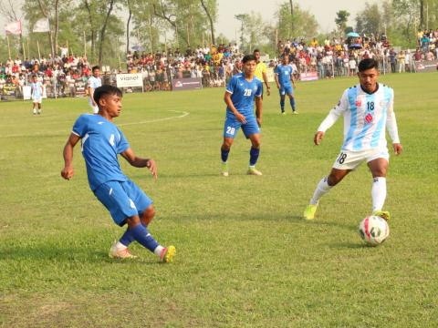 दमक । मानेभञ्ज्याङ फुटबल क्लब दार्जिलिङ झापाको दमकमा जारी दमक गोल्डकपको अन्तिम च ...