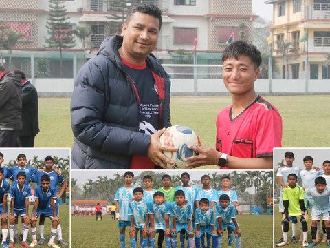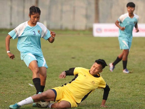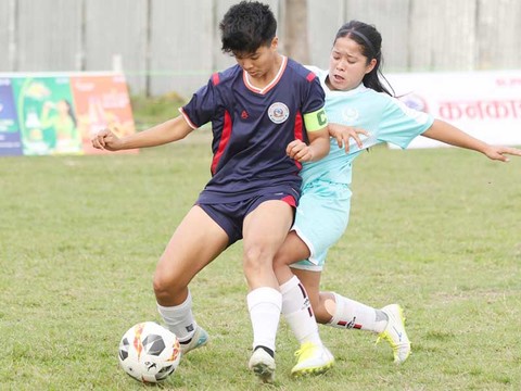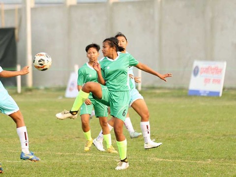 बिर्तामोड । झापाको बिर्तामोडमा जारी प्रथम अन्तर पालिकास्तरीय महिला फुटबल प्रतियो ...