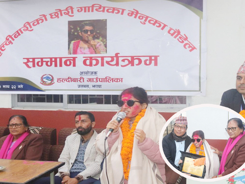 हल्दीबारी । झापाको हल्दीबारी गाउँपालिकाले गायिका मेनुका पौडेललाई सम्मान गरेको छ ...
