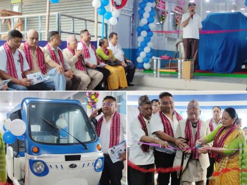 बितामोड । झापाको बिर्तामोडमा पहिलो पटक महेन्द्राको इलेक्ट्रोनिक ट्रयो अटो सार्वज ...