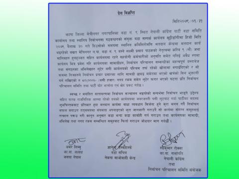 झापा । झापाको कमल गाउँपालिका वडा नं २ मा नेकपा (एकिकृत समाजवादी) ले वडाध्यक्षसहि ...
