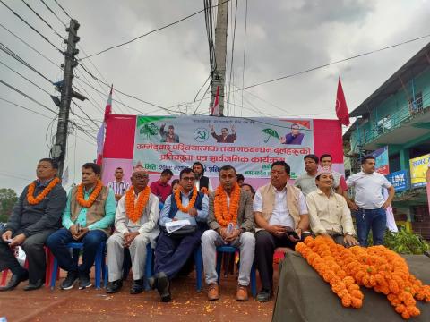 अर्जुनधारा । नेकपा एमालेका तर्फबाट अर्जुनधारा नगरपालिकाको मेयर पदका उम्मेदवार बल ...