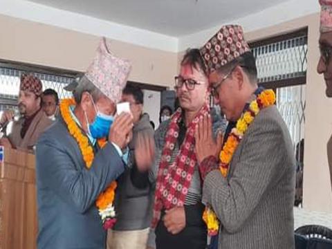 बिर्तामोड । महामन्त्री भएपछि पहिलो पटक झापा आएका नेपाली काङ्ग्रेसका महामन्त्री विश्वप ...