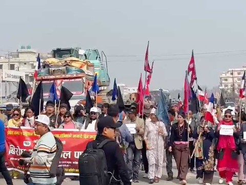 बिर्तामोड । प्रदेश १ पुनः नामाङकन संघर्ष समिति झापाले झापाको बिर्तामोडमा आजको दि ...