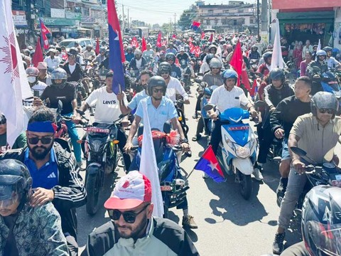 बिर्तामोड । संसद पुर्नस्थापनाको माग गर्दै मंगलवार झापाको अर्जुनधारामा बृहत मोटरस ...