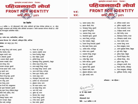 झापा । पहिचानवादी मोर्चा संघीय समितिले सल्लाहकार र संघीय सदस्यहरु मनोनयन गरेको छ ...