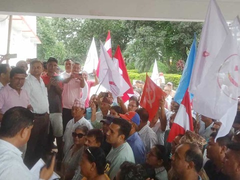 बिर्तामोड । तीन वटा साना दलहरु एकीकरणपछि नेपाल जनमुक्ति पार्टी घोषणासँगै ज ...