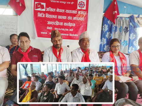 बिर्तामोड । अखिल नेपाल यातायात मजदुर निजी बिद्यालय चालक संघ झापाले हकअधिकार स्था ...
