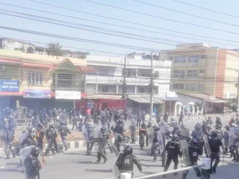 झापा । कोशी प्रदेश नामकरणको विरोधमा रहेको पहिचानबादी समूह र प्रहरीबीच विराटनगरमा ...