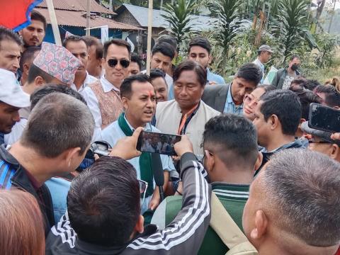 मेचीनगर ।झापा क्षेत्र नं. १ का उम्मेद्वार तथा नेपाली काँग्रेसका महामन्त्री विश्वप्रका ...