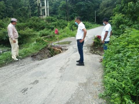 अर्जुनधारा । अविरल वर्षाका कारण झापाको अर्जुनधारा–११ स्थित चारआली–शनिश्चरे सडक ख ...