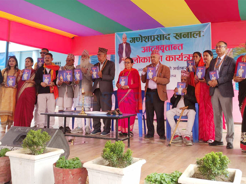 बिर्तामोड । शिक्षासेवी गणेशप्रसाद खनाल आत्मवृत्तान्त कृति लोकार्पण गरिएको छ । झा ...