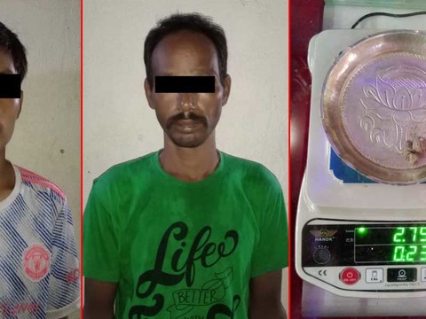 झापा । झापाको भद्रपुर नगरपालिका वडा नम्बर ९ निन्दा खोलाको पुलबाट लागू औषधसहित दु ...