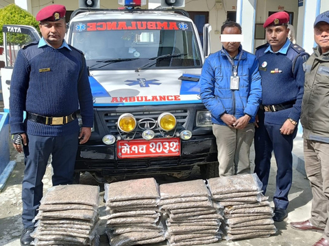 धनकुटा ।एम्बुलेन्सको प्रयोग गरी लागूऔषध गाँजा ओसार पसार गर्ने एक जनालाई धनकुटाक ...