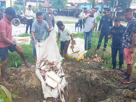 झापा । झापाको मेचीनगर नगरपालिका वडा नम्बर १३ चारआलीबाट बिना बिलको मरेको माछा आइत ...
