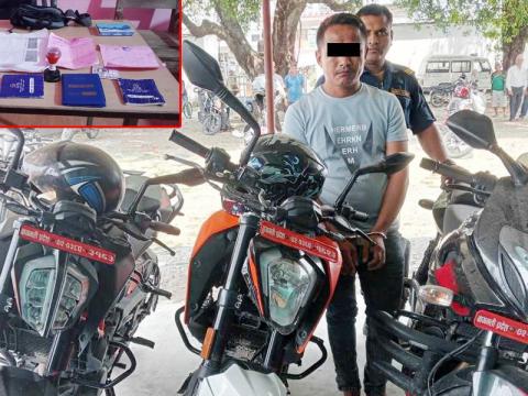 झापा । झापाबाट नक्कली कागजपत्रसहित तीन वटा मोटरसाइकल र एक जना ब्यक्तिलाई प्रहरील ...