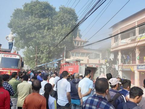 बिर्तामोड । झापाको बिर्तामोडस्थित दुर्गामन्दिर उत्तरमा रहेको प्रसाई मार्केटमा आगलागी ...