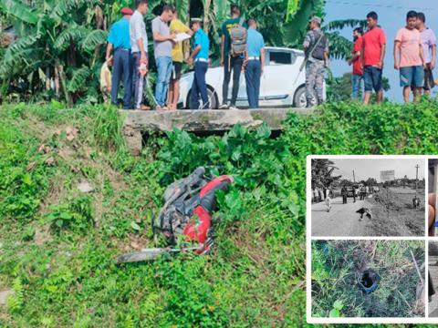 झापा । झापाको शनिश्चरे(बिर्तामोड सडकखण्डमा मोटरसाइकल दुर्घटना हुँदा एकजनाक ...