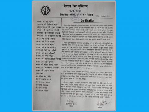 बिर्तामोड । नेपाल प्रेस युनियन केन्द्रीय समितिले केहीदिन अघि सातजना केन्द्रीय सद ...