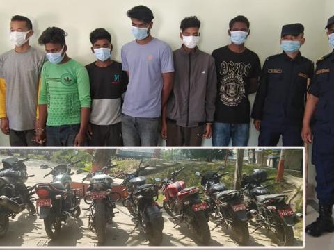 झापा । मोटरसाईकल चोरीमा संग्लग्न रहेका एक भारतिय नागरीकसहित छ जनालाई जिल्ला प्रह ...
