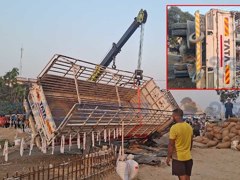 लक्ष्मीपुर । झापाको पूर्व–पश्चिम राजमार्गस्थित लक्ष्मीपुर चोकमा ट्रक पल्टदा केही ...
