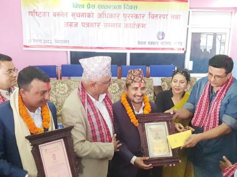 झापा।पूर्वाञ्चल दैनिकका सह सम्पादक सुरेन्द्र भण्डारीलाई षष्टिका वस्नेत सूचनाको अधिकार ...