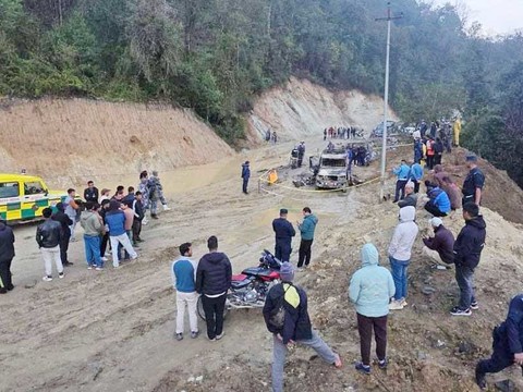 झापा । ताप्लेजुङ सदरमुकाम फुङ्लिङबाट पाथीभरा मन्दिर दर्शनका लागि गइरहेको बुलेरो ...