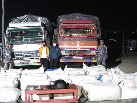 झापा । झापाको बुद्धशान्ति गाउँपालिका–४ स्थित मेची राजमार्गबाट १६ सय ३६ किलो गाँज ...