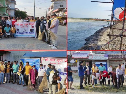 लक्ष्मीपुर ।श्री छठ युवा फ्रन्ट बिर्तामोडले छठ पूजाका लागि सरसफाई कार्यक्रम गरे ...