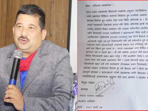 झापा । नेपाल पत्रकार महासंघका केन्द्रीय अध्यक्ष बिपुल पोखरेलले राजीनामा दि ...