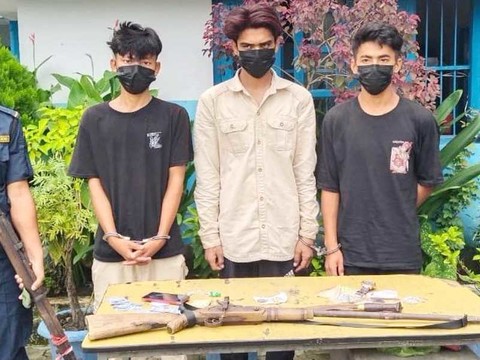 झापा । झापाको अर्जुनधारा नगरपालिका वडा नम्बर ४ बाट एक थान भरुवा बन्दुकका साथमा च ...
