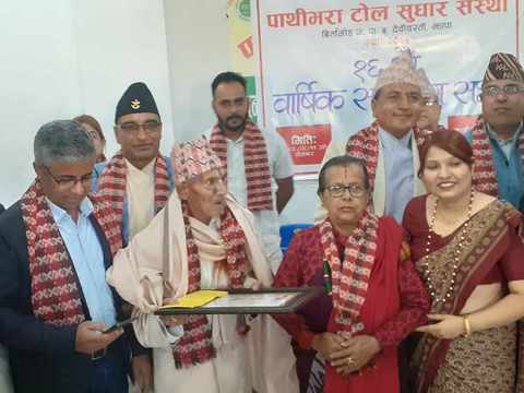 बिर्तामोड ।पाथीभरा टोल सुधार संस्थाको १६ औं बार्षिक साधारणसभामा हरिप्रसाद ढकालल ...
