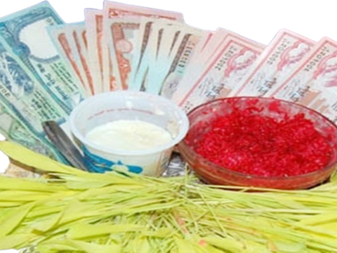 झापा । बडादशैं नवदुर्गाको प्रसादका रुपमा मान्यजनबाट टीका शुभ साइतको रातो टीका तथ ...