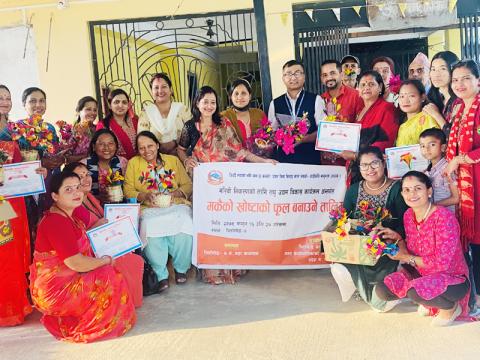 बिर्तामोड । बिर्तामोड नगरपालिका वडा नम्बर ७ मा मकैका खोष्टाको फूल बनाउने त ...