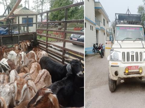 झापा । झापाको दक्षिण झापा गाउँपालिका वडा नं. १ लसुनाबाट प्रहरीले अवैध बाख्रासहित ...