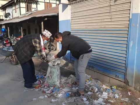 बिर्तामोड । नेपाली कांग्रेसका कार्यकर्ता तथा सरसफाई अभियानकर्मीले मतदान स्थल वरप ...