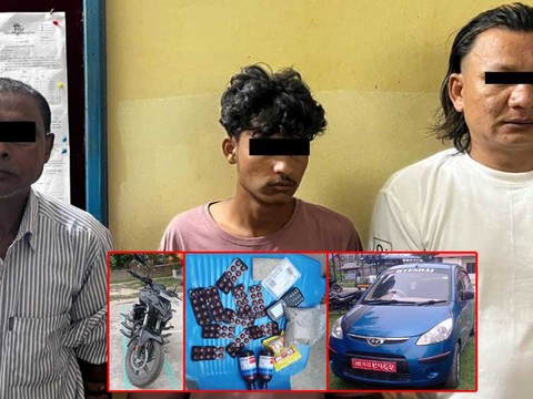 झापा । झापाको गौरीगञ्ज गाउँपालिका–३ गौरीगञ्ज बजारबाट लागूऔषध, नगद र कार सहित तीन ...