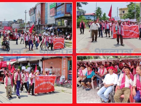 बिर्तामोड । नेकपा (माओवादी केन्द्र) को जनवर्गीय संगठनले झापाको बिर्तामोडमा ...