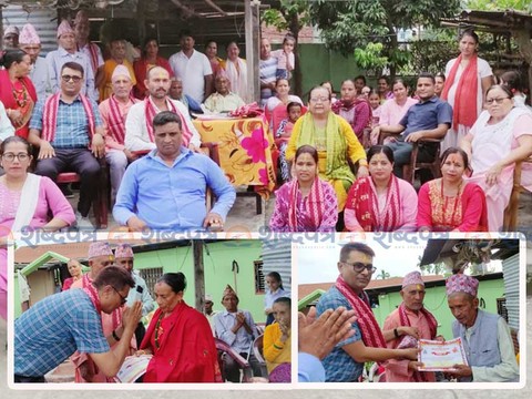 बिर्तामोड । नव दुर्गा किर्तन मण्डलीले छ जना जेष्ठ नागरिकसहित नौ जनालाई सम्मान गर ...